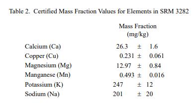 有機(jī)酸和元素的認(rèn)證質(zhì)量分?jǐn)?shù)值分別在表 1 和表 2 中提供。 NIST 認(rèn)證值是 NIST 對其準(zhǔn)確性具有最高置信度的值,因?yàn)樗幸阎蚩梢傻钠顏碓炊家驯徽{(diào)查或考慮在內(nèi) [1]。價(jià)值分配分析由 NIST 和合作實(shí)驗(yàn)室進(jìn)行。認(rèn)證值計(jì)算為 NIST 方法的平均值和合作實(shí)驗(yàn)室提供的平均結(jié)果的中位數(shù)(如果適用)。相關(guān)的不確定性以大約 95% 的置信水平表示 [2-4]。