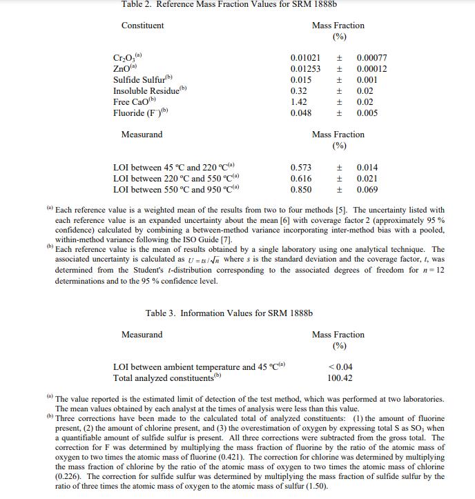信息值:NIST SRM 1888b 硅酸鹽水泥(標(biāo)準(zhǔn)品)表 3 中報告了兩個信息值。信息值被認(rèn)為是 SRM 用戶感興趣的值,但沒有足夠的信息來評估與值相關(guān)的不確定性 [2]。